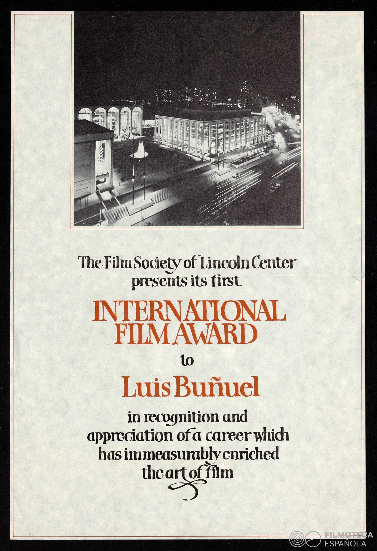 Primer «International Film Award» concedido a Buñuel por The Film Society of Lincoln Center