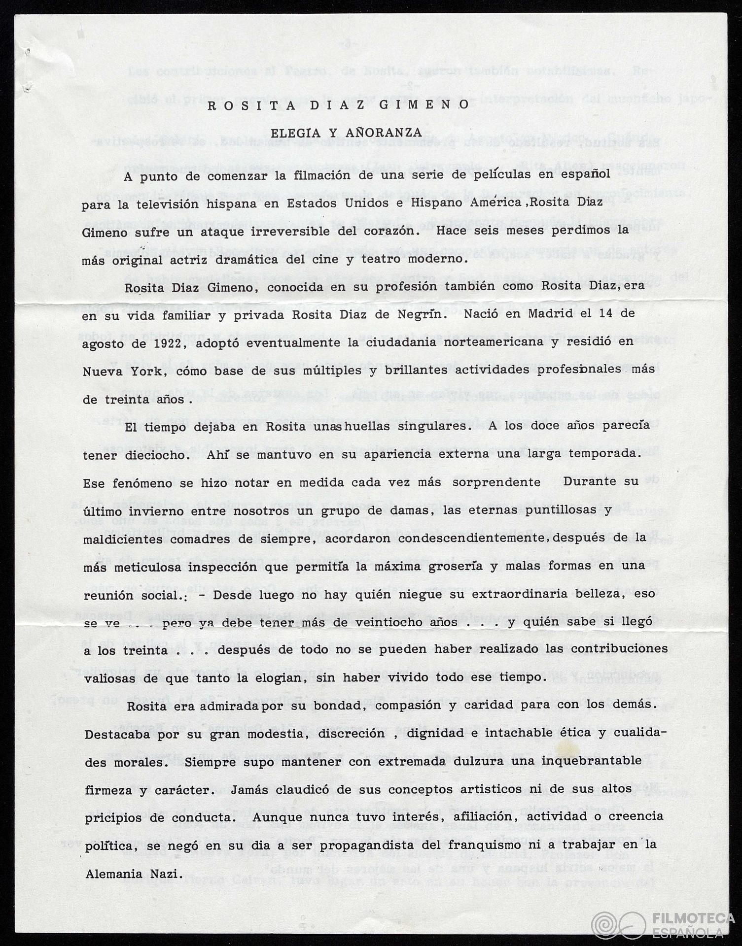 Escrito titulado «Rosita Díaz Gimeno – Elegía y añoranza», por Pedro Durán