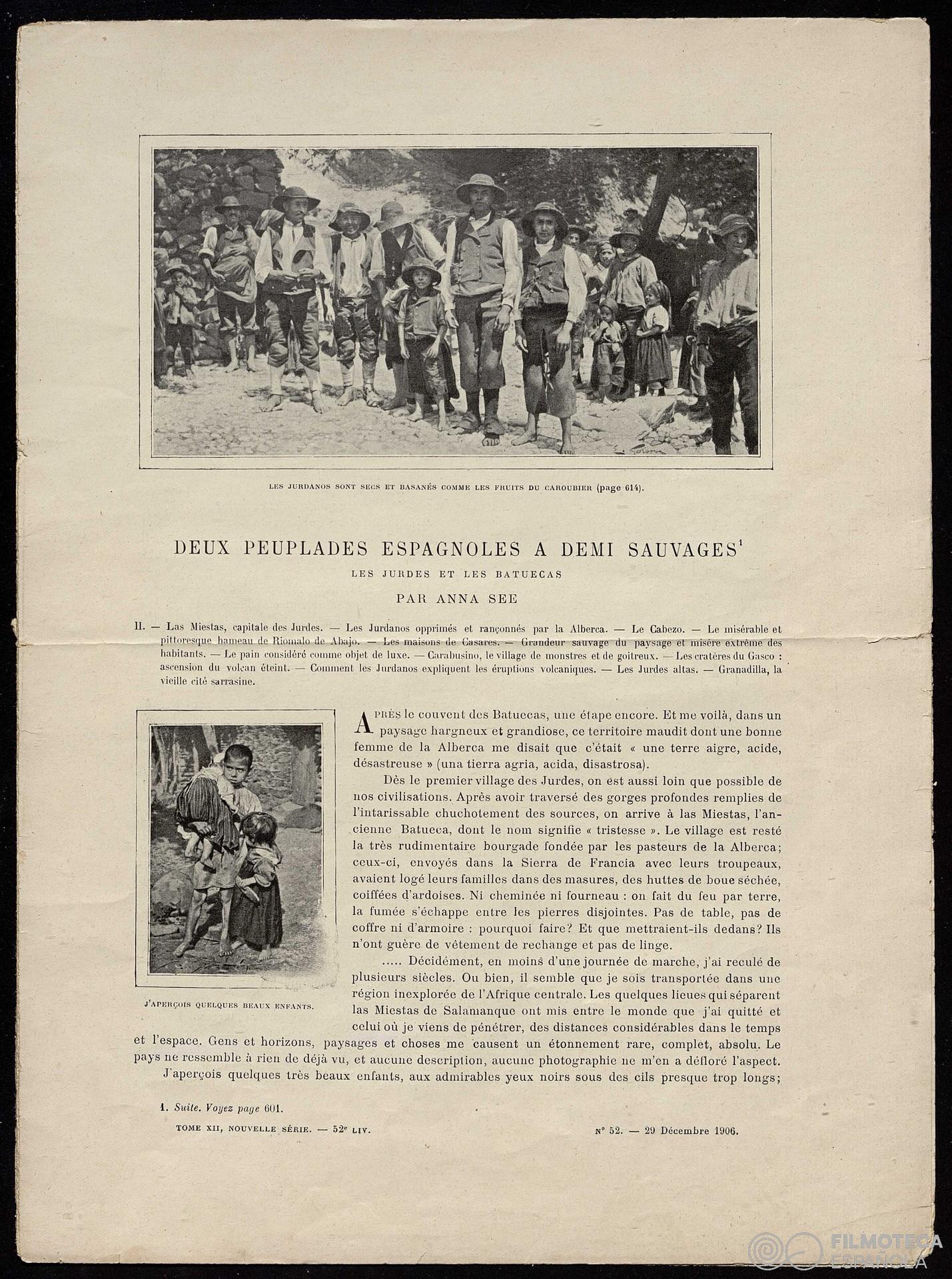 Artículo titulado «Deux Peuplades espagnoles à demi sauvages les JURDES et les BATUECAS», por Anna See