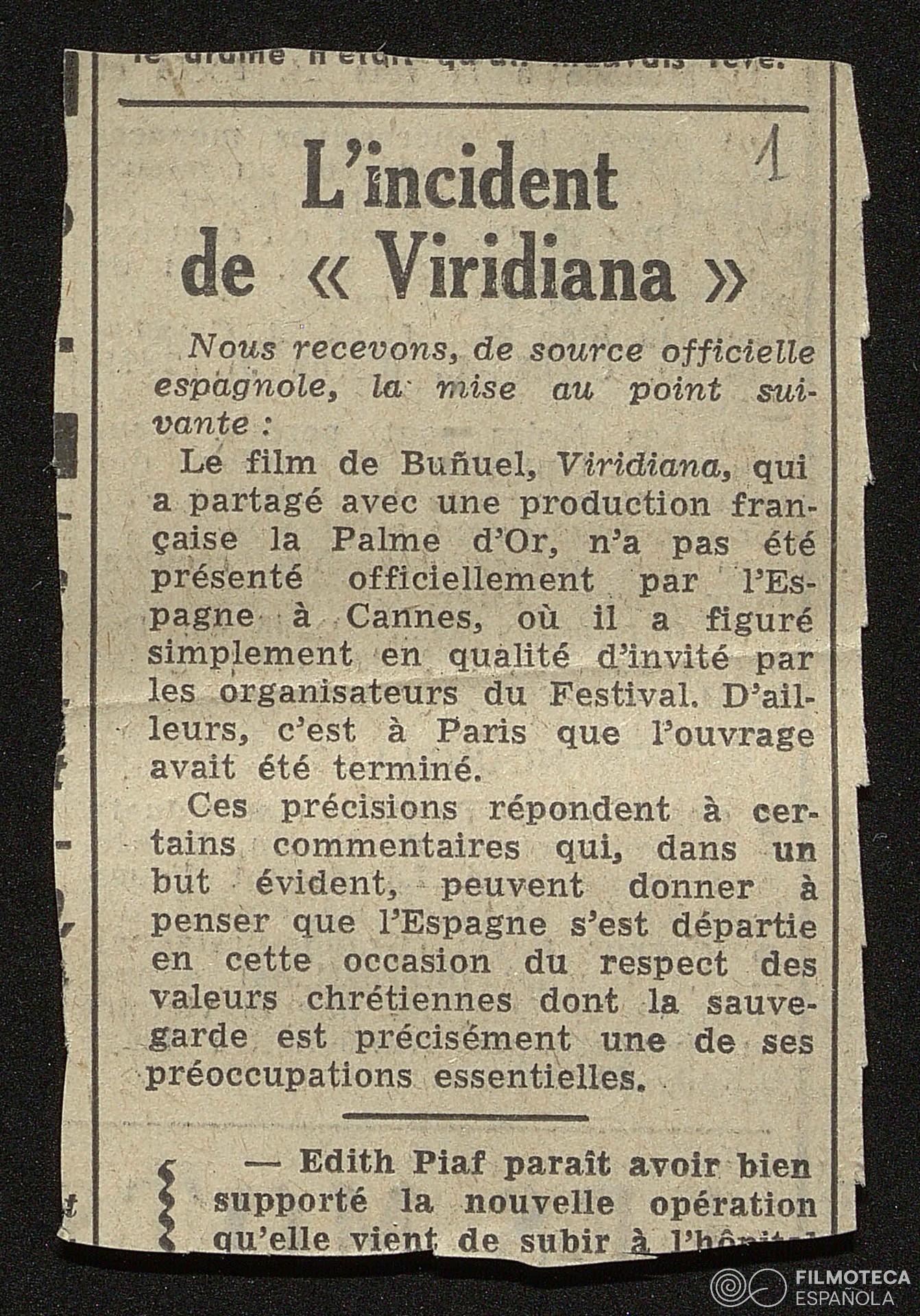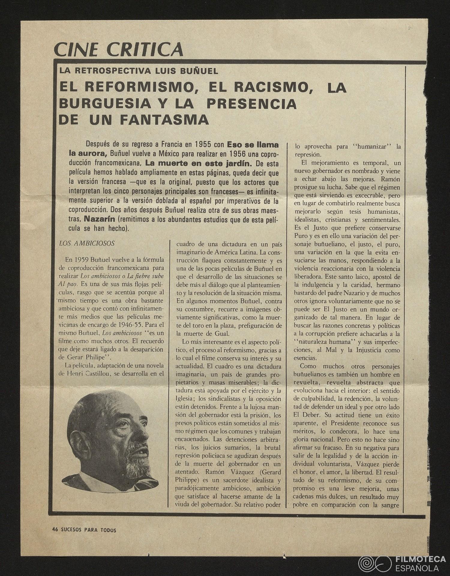 Recortes de prensa mexicana sobre el éxito de la película Nazarín en el Festival de Cannes