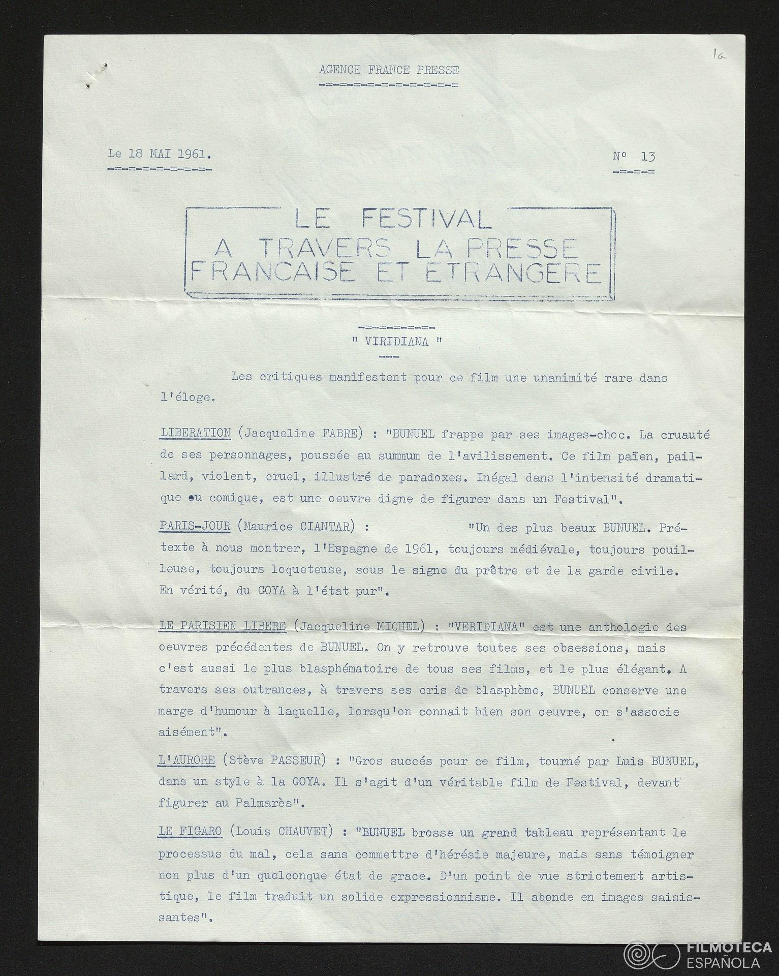 Recortes de prensa sobre el homenaje del Festival de Cannes del año 1981 a Luis Buñuel