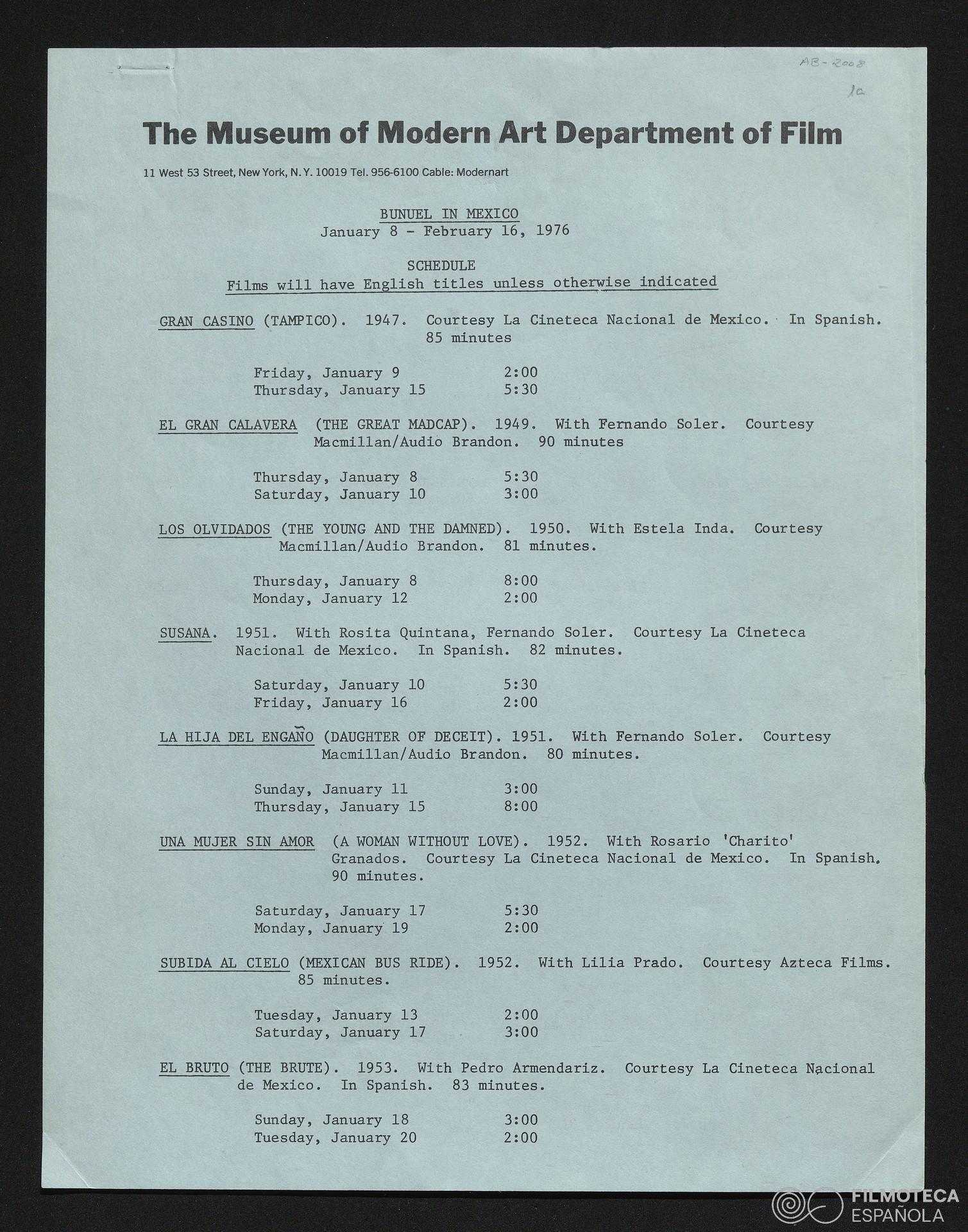 Informes del Departamento de Cine del Museo de Arte Moderno de Nueva York sobre el ciclo «Buñuel en México»