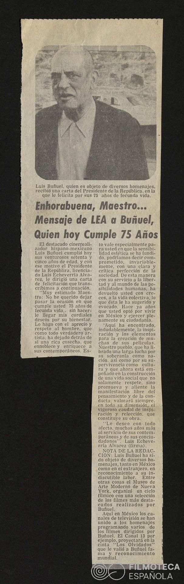 Recortes de prensa sobre el 80 cumpleaños de Luis Buñuel