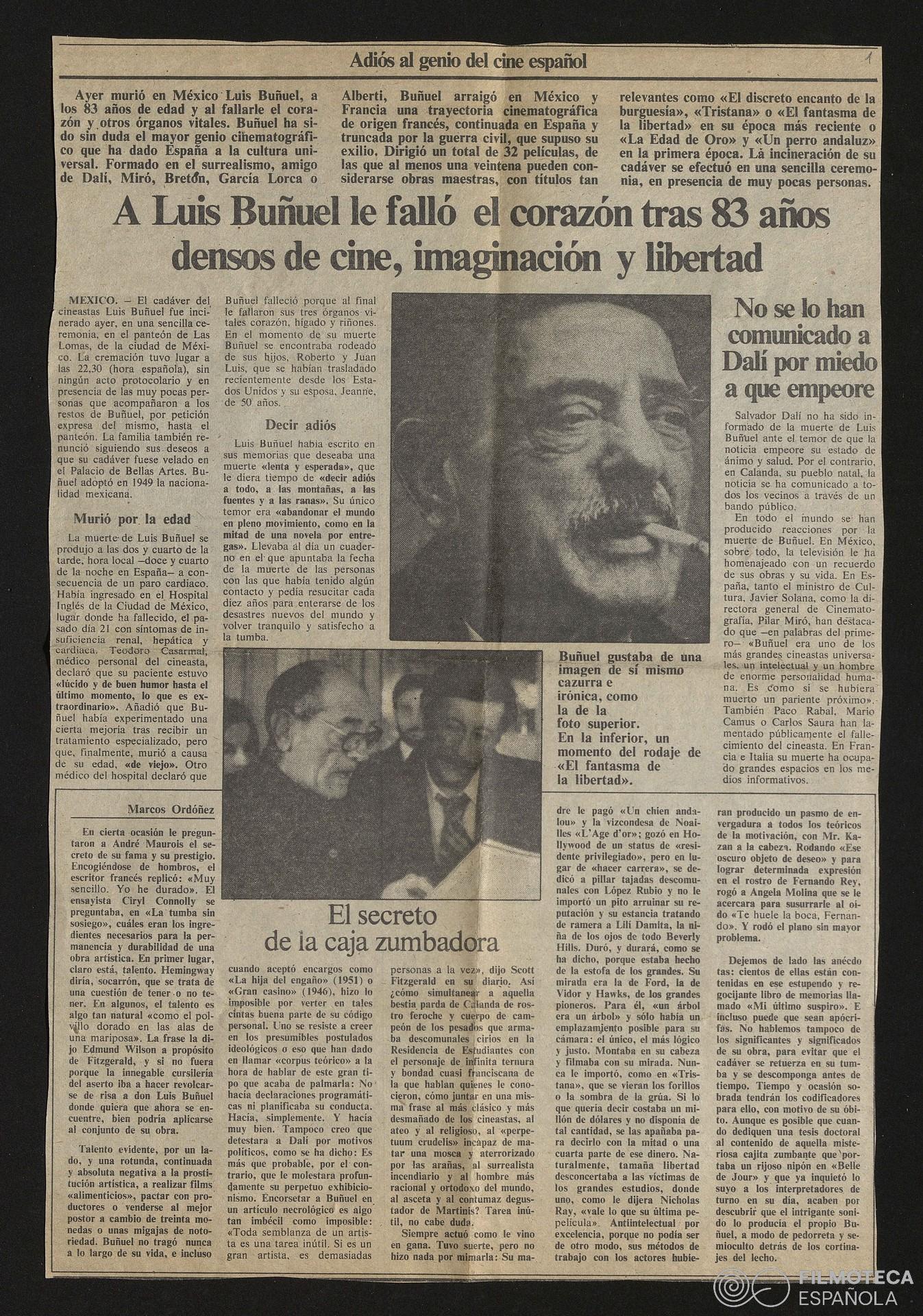 Recortes de prensa sobre muerte de Luis Buñuel
